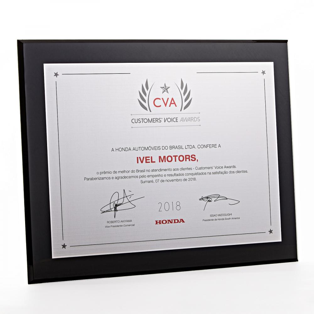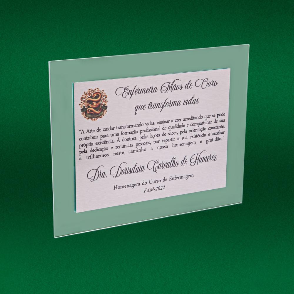 Placa de Aço Inox Escovado – Impressão (sem relevo) com quadro de acrílico cristal ou preto