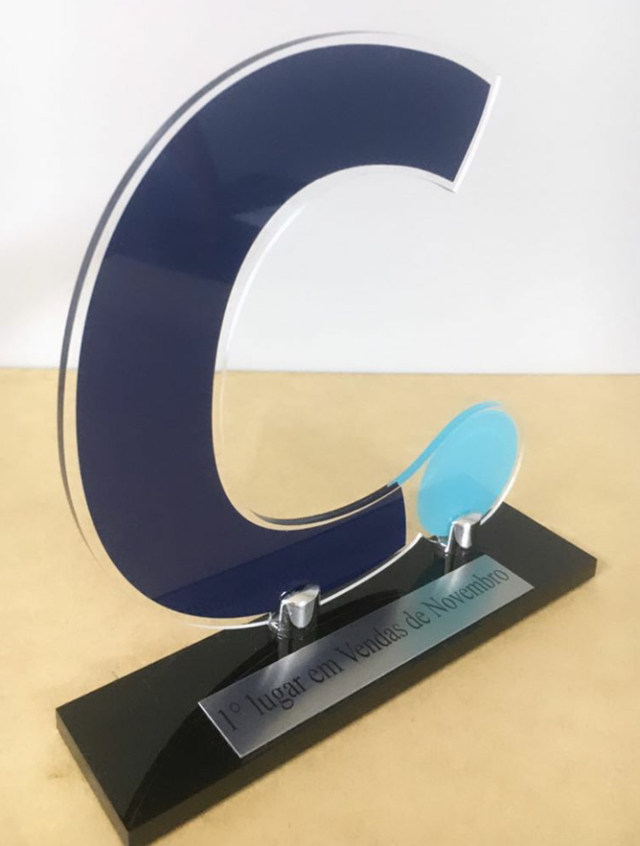 Corpo Cristal 4 mm / Base Acrílico Preto 8mm 17x6cm